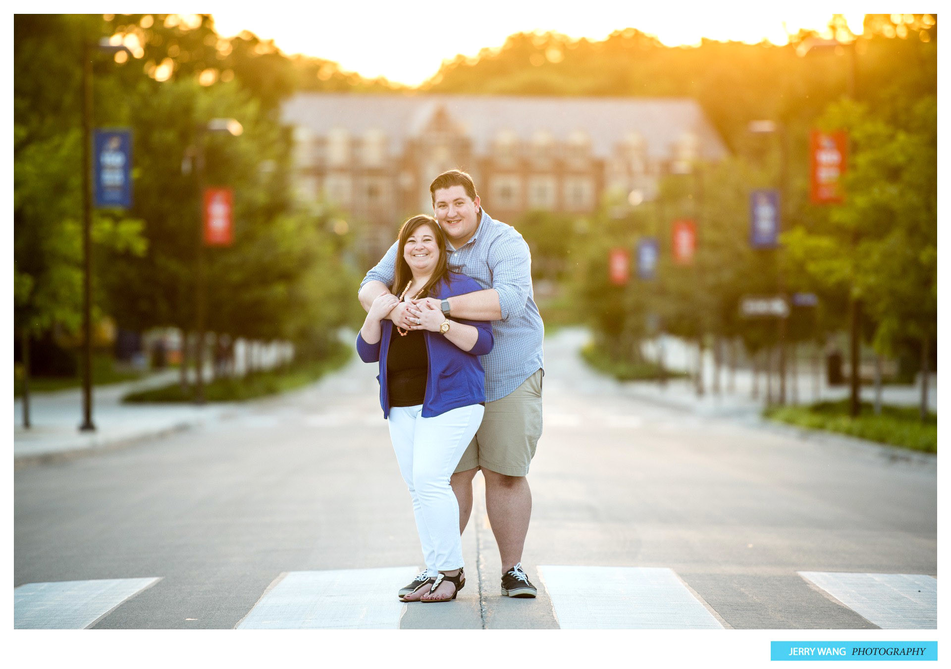 Photos from Josh and Natalie’s engagement session in Lawrence, Kansas at the University of Kansas campus by Kansas City wedding photographer Jerry Wang Photography.