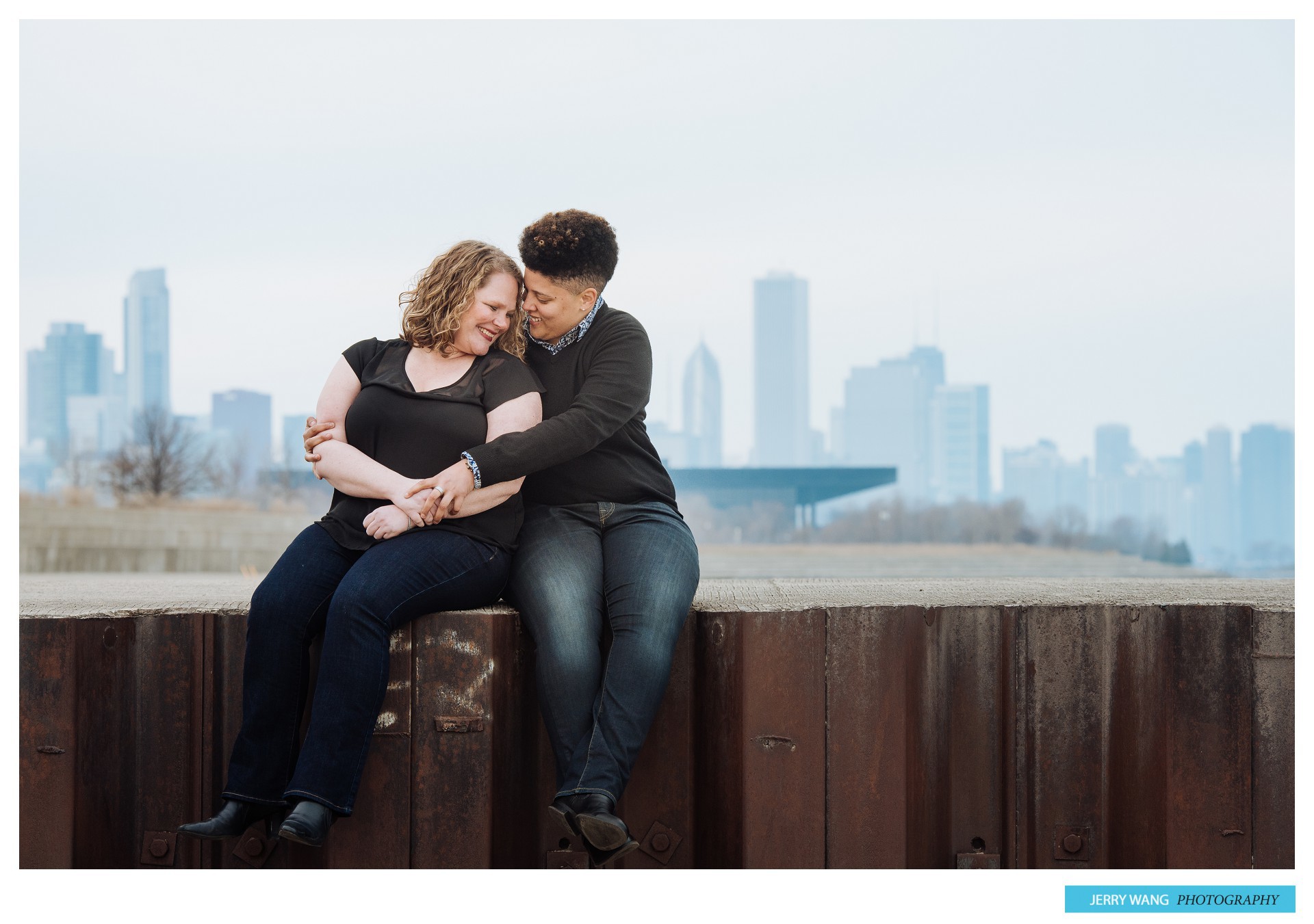 Photos from Emily and Beth’s engagement session in Chicago, Illinois at the 31st Street Beach and Humboldt Park by Kansas City wedding photographer Jerry Wang Photography.
