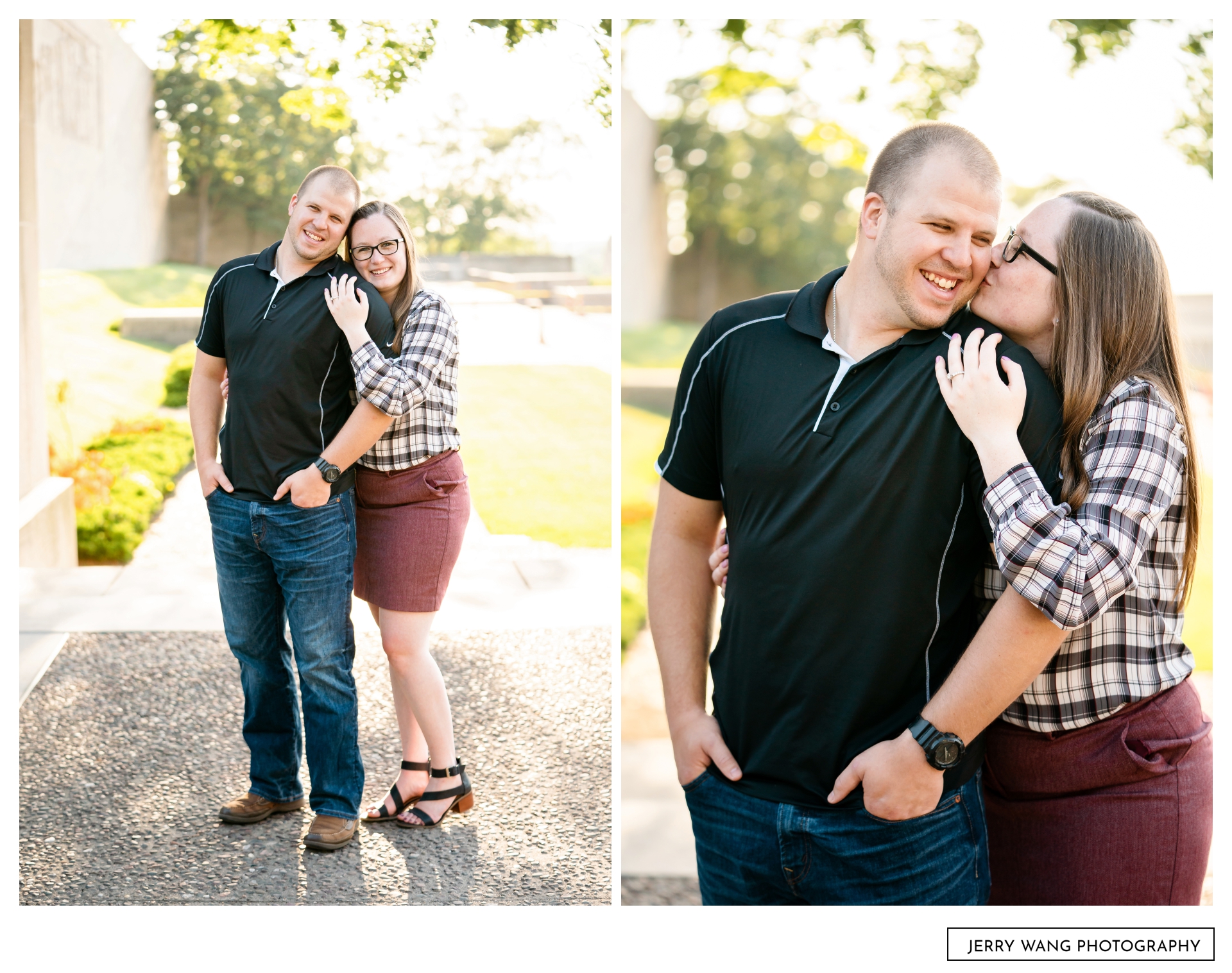 Photos from Josh and Katelyn’s engagement session in Kansas City at Liberty Memorial and Shawnee Mission Park by Kansas City wedding photographer Jerry Wang Photography.