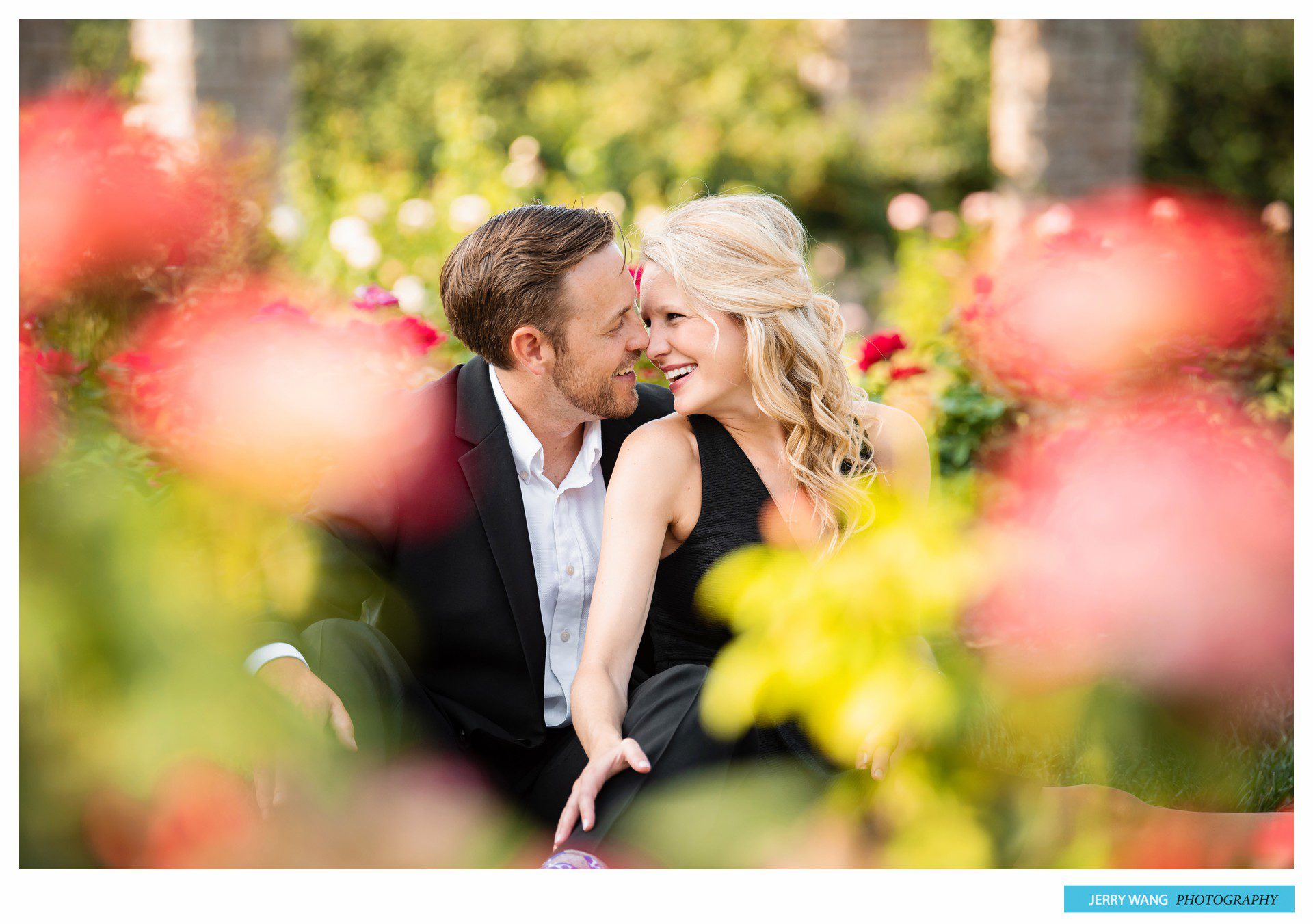 Photos from Mallory and CJ’s Kansas City engagement session at Jacob Loose Park and a little bit of fun on the Olathe schools football field by Kansas City wedding photographer Jerry Wang Photography.